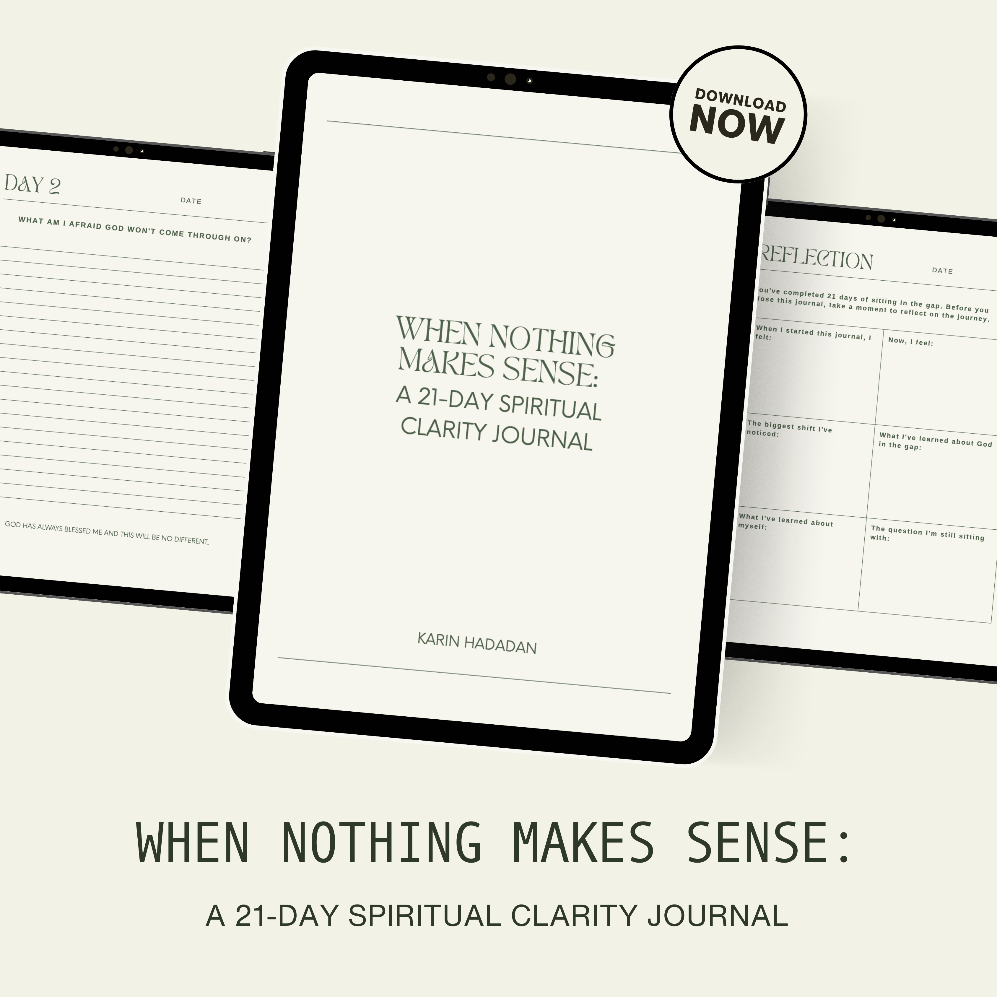 This 21-day spiritual clarity journal is a gentle, guided practice designed to help you sit with uncertainty, release control, and trust what is unfolding beneath the confusion. Rather than rushing you toward answers, it invites you to find meaning, faith, and grounding within the waiting.